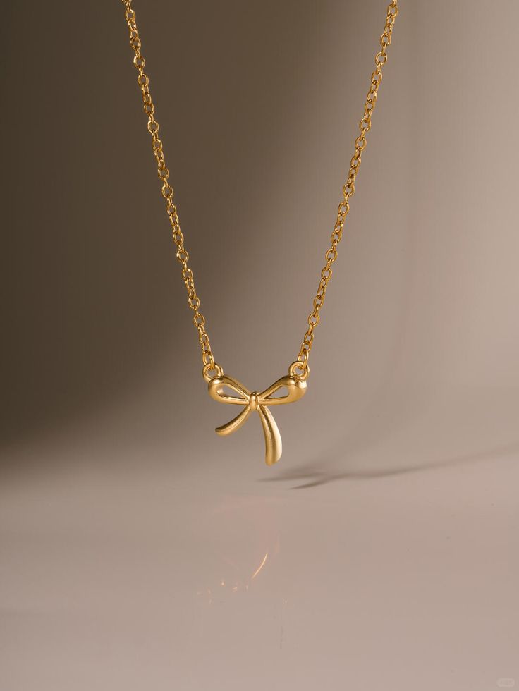 Golden Bow Charm Necklace – Delicate Chain | LitAuraa