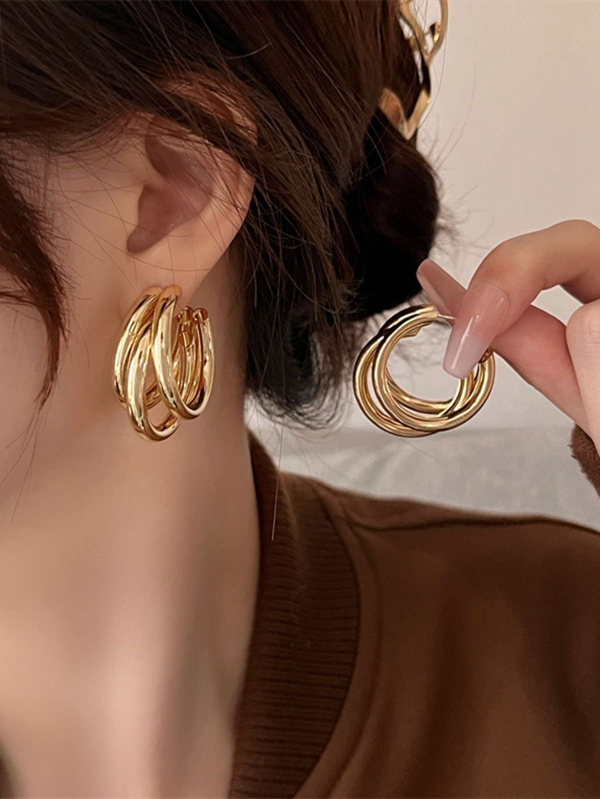 Make a confident style statement with the Trihoops Earrings, designed for those who love modern elegance with a twist. Featuring a layered triple-hoop structure, these earrings create a bold, dimensional look that instantly elevates any outfit.