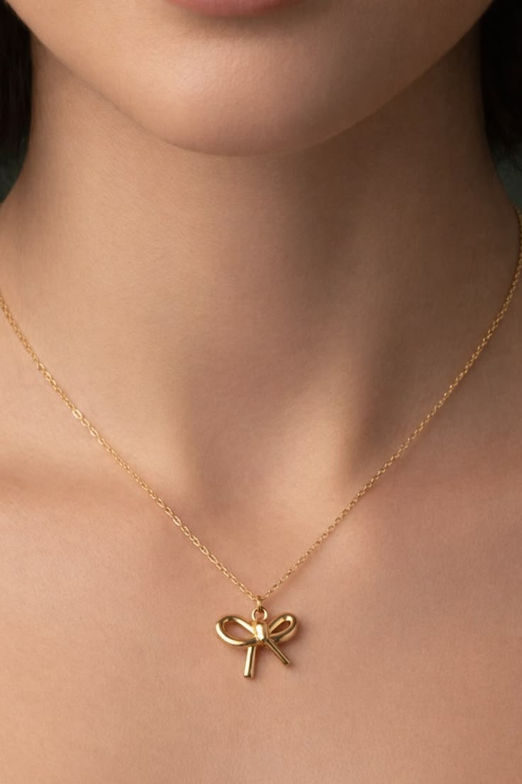 Golden Bow Charm Necklace – Delicate Chain | LitAuraa