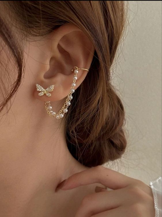 Add a touch of Korean-inspired elegance to your style with the Korean Single Ear with Butterfly. This unique piece features a sparkling butterfly stud paired with a graceful pearl chain that connects to an ear cuff, creating a stylish layered effect without needing multiple piercings. Crafted with a gold-tone finish and delicate detailing, it blends femininity with modern fashion effortlessly. Lightweight and comfortable, it’s perfect for daily wear, parties, or elevating your minimalist jewelry collection with a trendy statement.